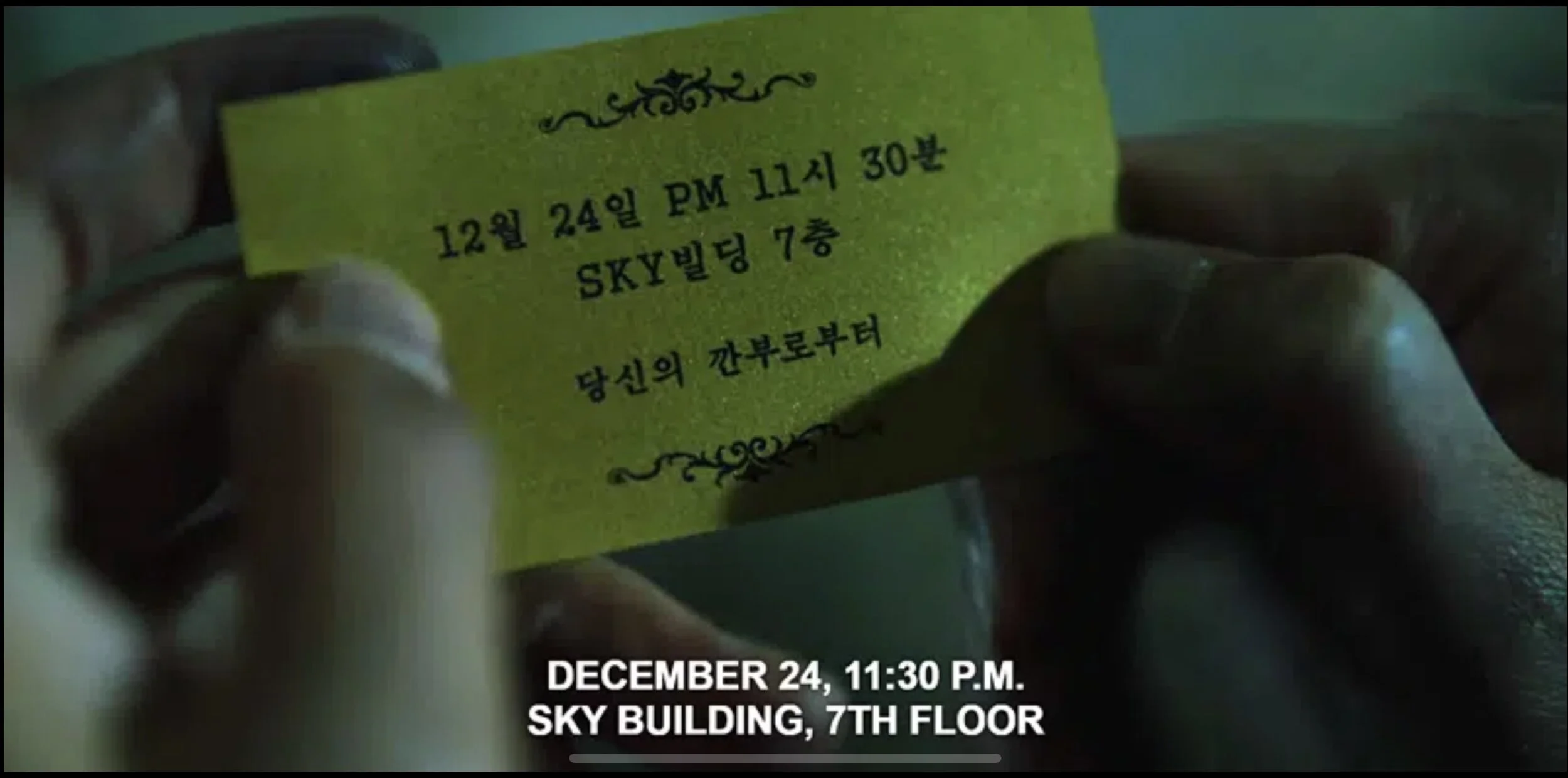 Does he finally chill out and live it up? Nope. He’s basically dead inside and he spends about a year mopping around. Then, Gi-hun receives a symbolic invitation.