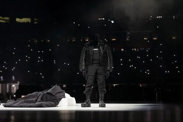 During this event, the black-clad Kanye was portrayed as a prisoner. The stage consisted of a mattress on the floor and a couple of dumbbells. Incidentally, Kanye actually lived in a cell-like room inside the stadium during the week of the event. In short, the entire thing appeared to refer to when Kanye was in forced psychiatric commitment.