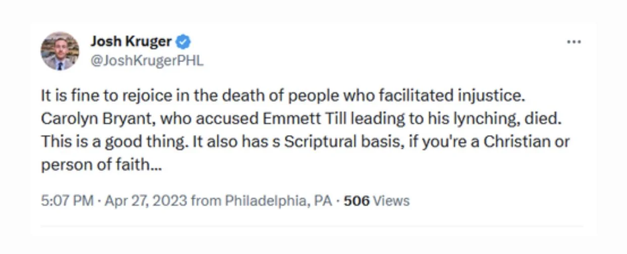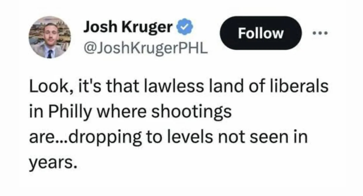 Kruger also mocked conservatives concerned over the city’s shootings, which he said were “dropping to levels not seen in years.”