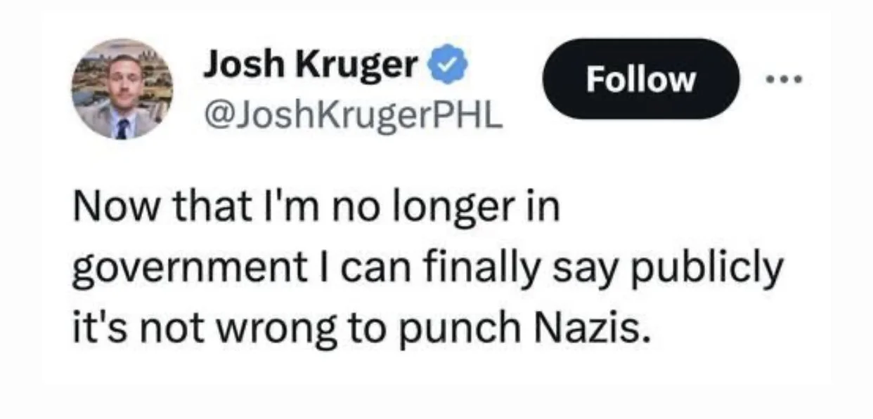 Kruger also wanted to ‘punch Nazis,’ and accused people of ‘not knowing how to properly read’ crime statistics.